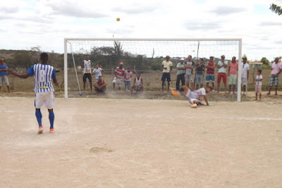 | Esta foi a primeira cobrança da equipe de Chapada - Bene chutou por cima da trave |